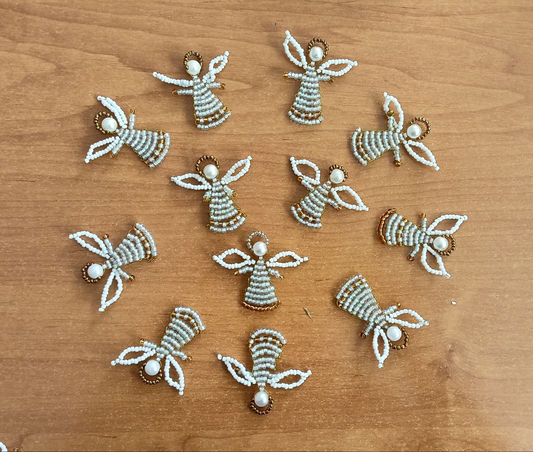 До майстер-класу додаються світлини поробок та посилання на YouTube зі схемою вироблення Янголу з бісеру: https://youtu.be/Ag2U-rU6FN0